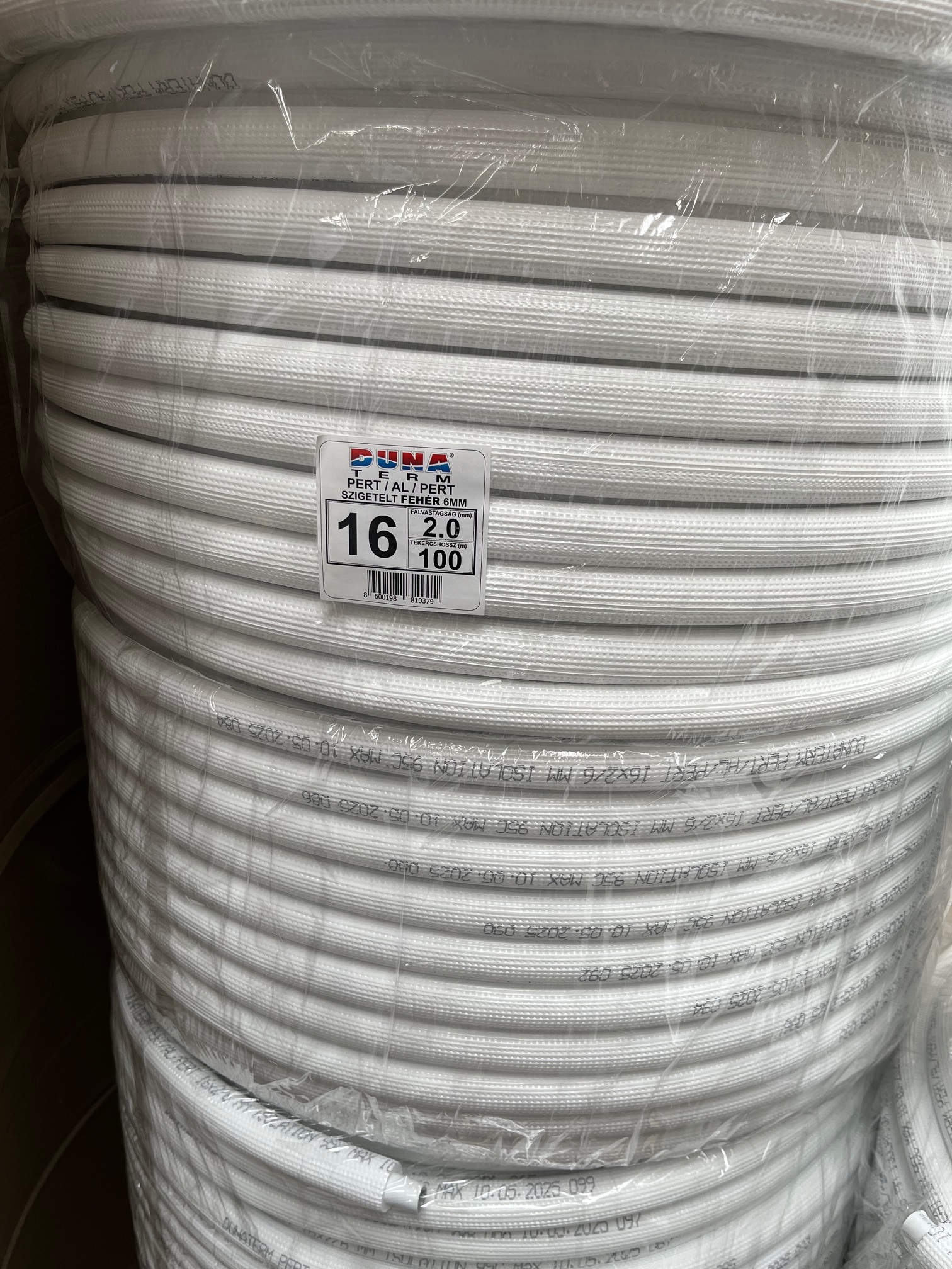 Dunaterm Pert 16×2 6 mm szigetelt ötrétegű cső 100 fm/tekercs fehér (PERT-16X2-SZF-100)