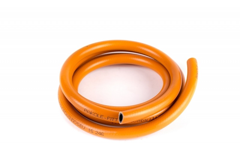 PB Gáztömlő 9 mm 9×14 mm 50fm/tekercs.PB palackoknak, forrasztó eszközöknek, melegítő készülékeknek. Kiváló minőségű speciális anyagból készült, PVC textilháló megerősítéssel, narancssárga színben, 3 mm falvastagsággal. Külső átmérője 15 mm, belső átmérője 9 mm. Hőmérséklet max 90 °C, min -20°C. Kihordási idő 5 év.