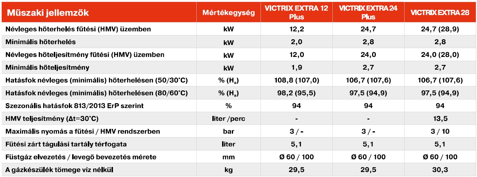 Immergas Victrix Extra 28 Fali kondenzációs kombi gázkazán termék ismertető adatlap