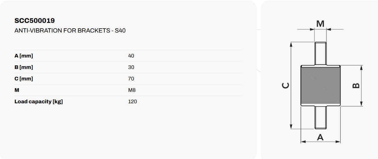 A 40 mm átmérőjű, 70 mm magas, M8 csatlakozású, strapabíró gumiból készült kültéri rezgéscsillapító gumibak tökéletes választás, ha fontos a stabilitás és a hosszú élettartam.