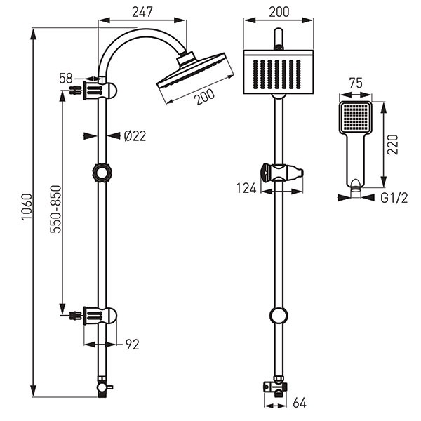 | Zuhanyrúd hossza | 1060 mm |