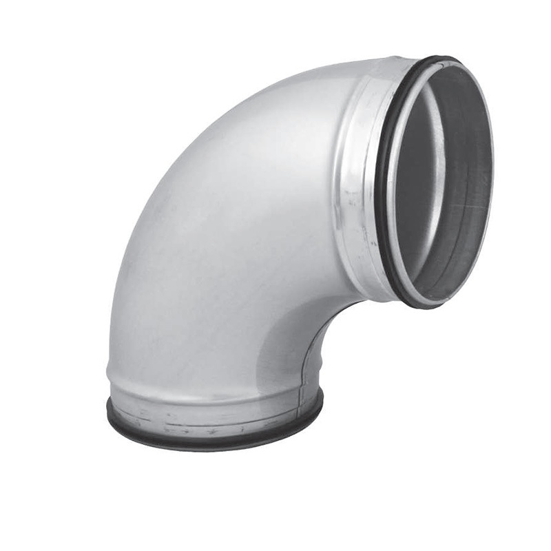A BPL 90 fok könyök idom gumi tömítéssel rendelkezik a megfelelő légtömörség érdekében.
